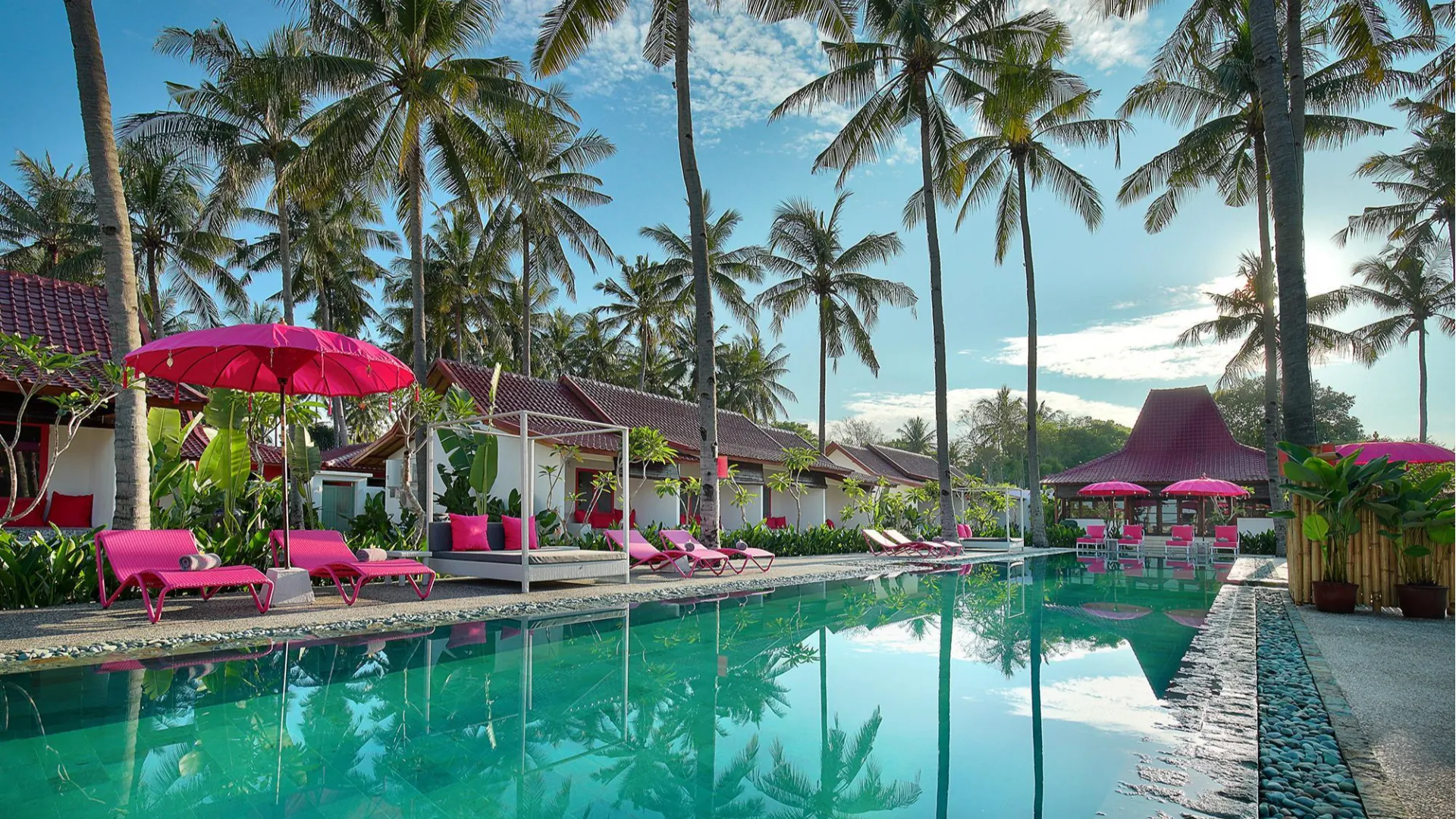 Pink Coco er et chickt, spansk inspireret resort på den østlige side af Gili Air, forbeholdt voksne gæster.