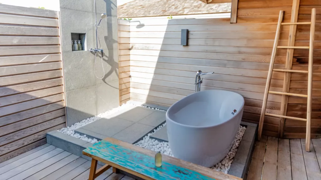 Øen har ialt 50 villaer i 3 kategorier -alle villaerne er indrettede i lyst og lækkert design, med stort åbent badeværelse og skøn terrasse med privat pool: