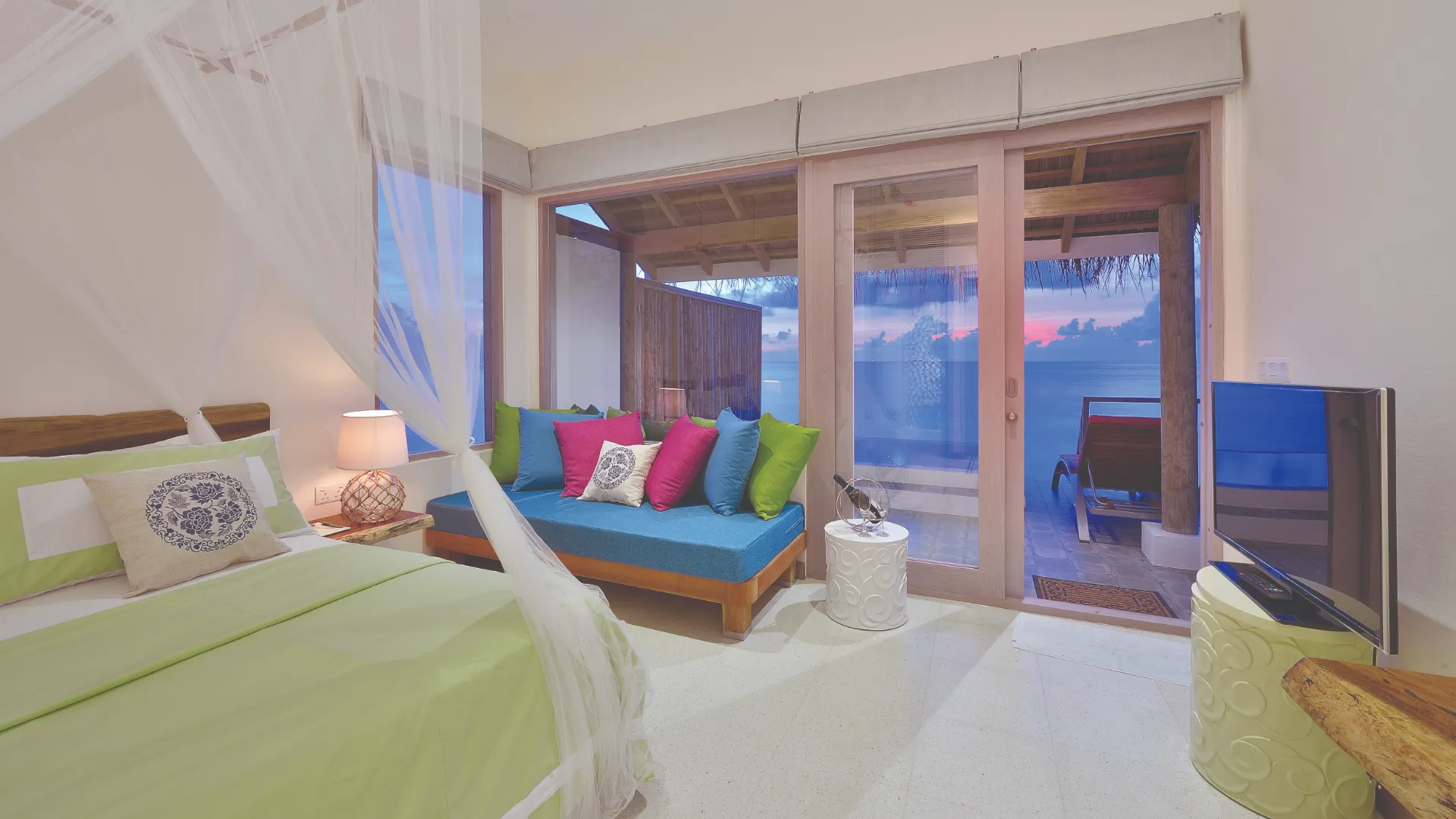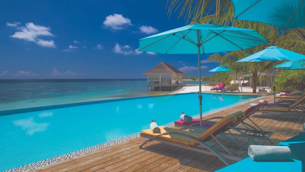Resortet har en hyggelig atmosfære, og i opholdet er der inkluderet en god all-inclusive pakke, som også inkluderer 2 udflugter samt massage. Her bor I i store, lyse bungalows med direkte adgang til stranden, eller i kan vælge at opgradere værelset til vandvilla med privat pool.