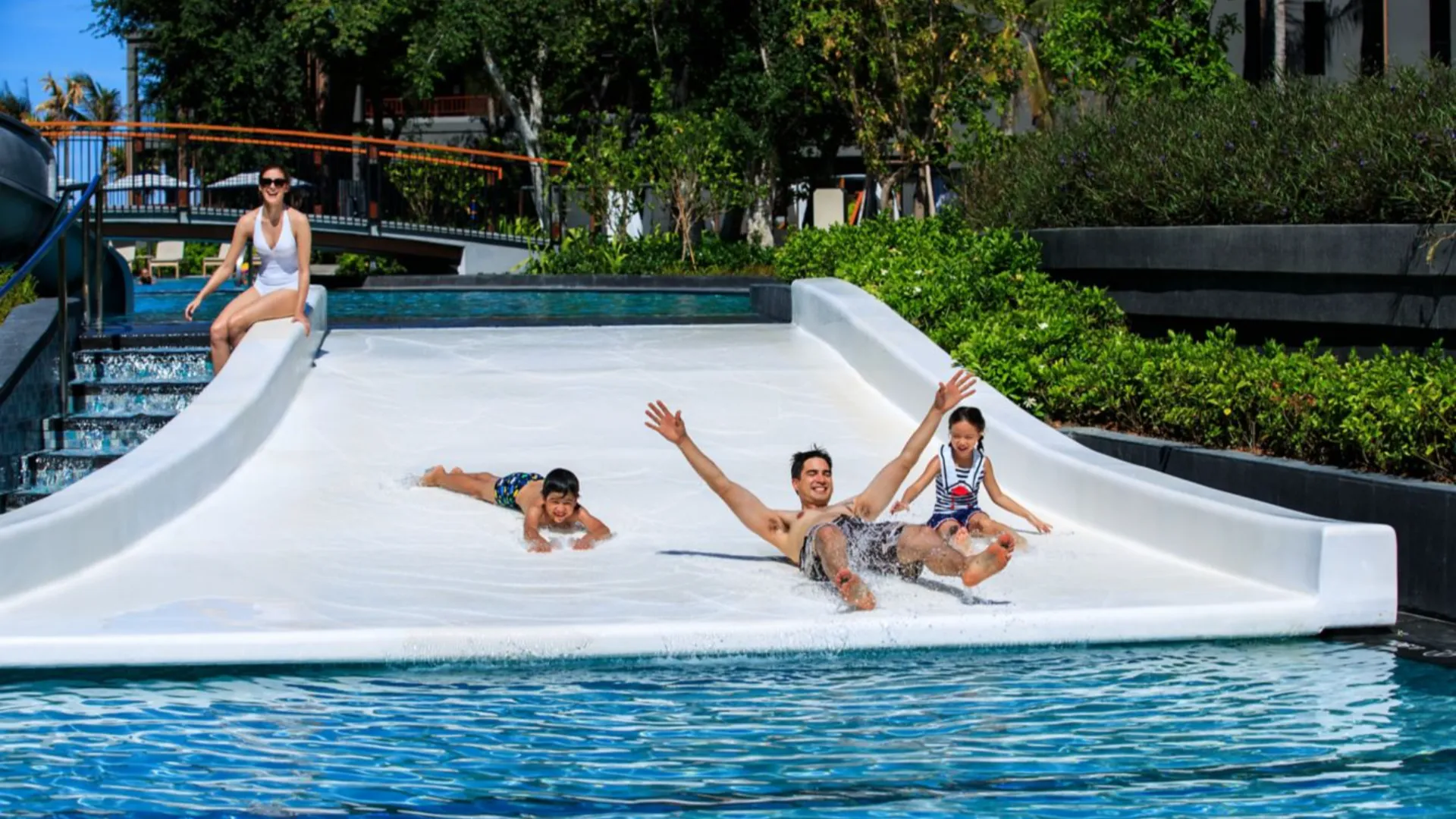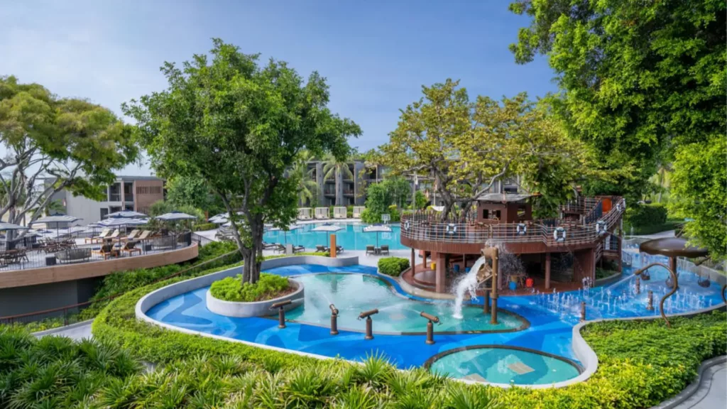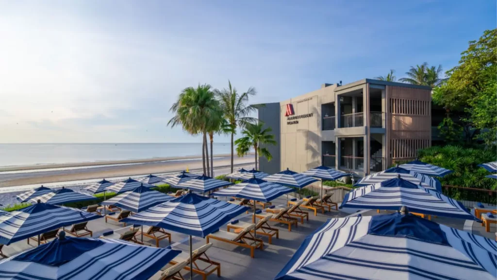 Marriott er til jer der gerne vil bo rigtig godt, med meget højt serviceniveau. I bor i en smuk landskabshave, med lagunen der snor sig gennem resortet, og 5 pools at vælge imellem, den ene forbeholdt voksne gæster. Her er flere restauranter og barer, blandt andet Big Fish Bar der serverer seafood, med udsigt til stranden.