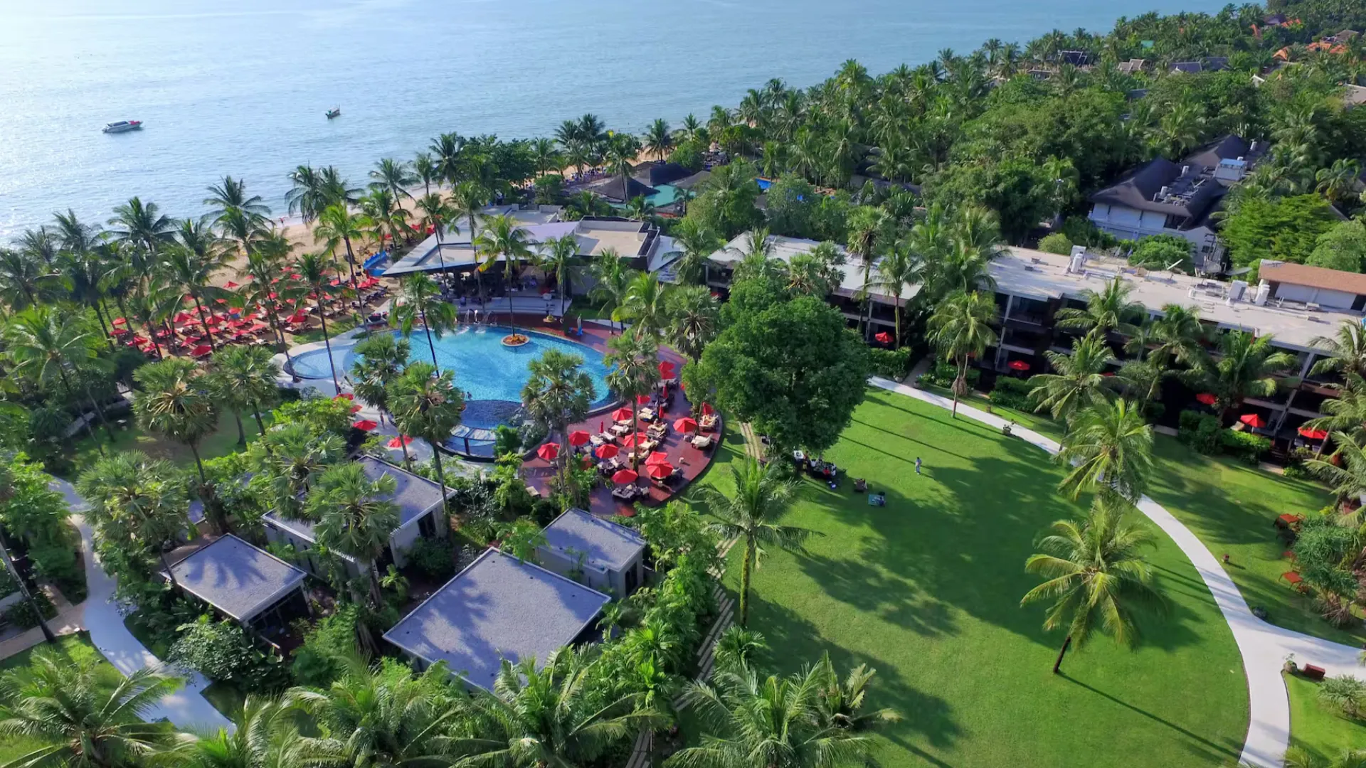 Værelserne er store og rummelige, alle indrettet i et let og lyst design med enten king size-seng eller to queen size-senge. De har alle privat balkon eller terrasse, hvor I kan sidde og nyde udsigten til poolen eller til den frodige have. Her er også værelser med privat jacuzzi og smukke oceanfront villaer i thailandsk still med en uforstyrret havudsigt.