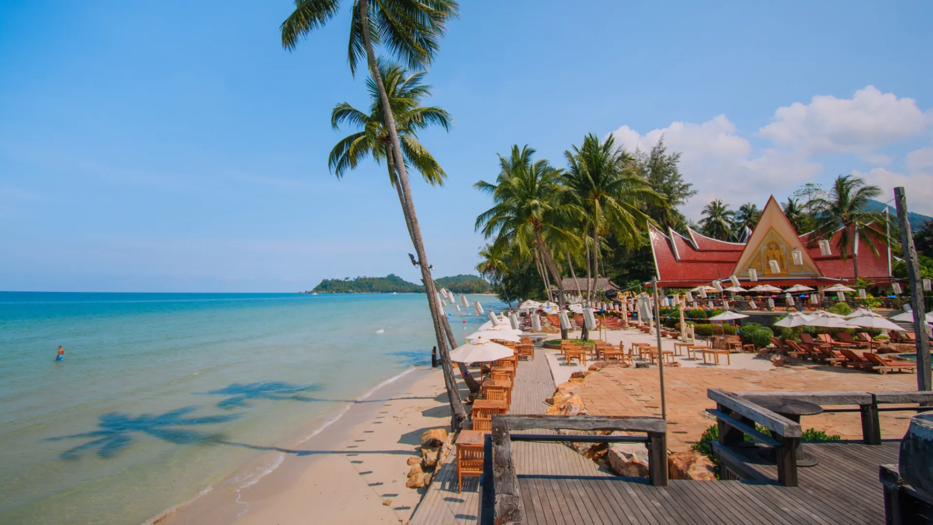 På den fredelige Klong Prao Beach ligger det smukke Santhiya Resort, med udsigt til en fantastisk solnedgang fra første parket – nemlig fra den hvide sandstrand med de svajende palmer. Resortets villaer er bygget af teaktræ, i lækker thai-stil og ligger spredt i en tropisk have.