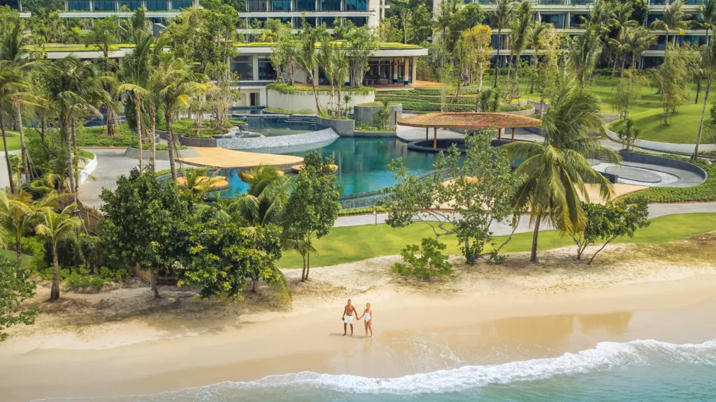 Hotellet ligger på en godt 1 km privat sandstrand, omgivet af mangrove og frodig regnskov som giver mulighed for bådture og vandreture til view points med fantastisk udsigt over øen og skærgården.