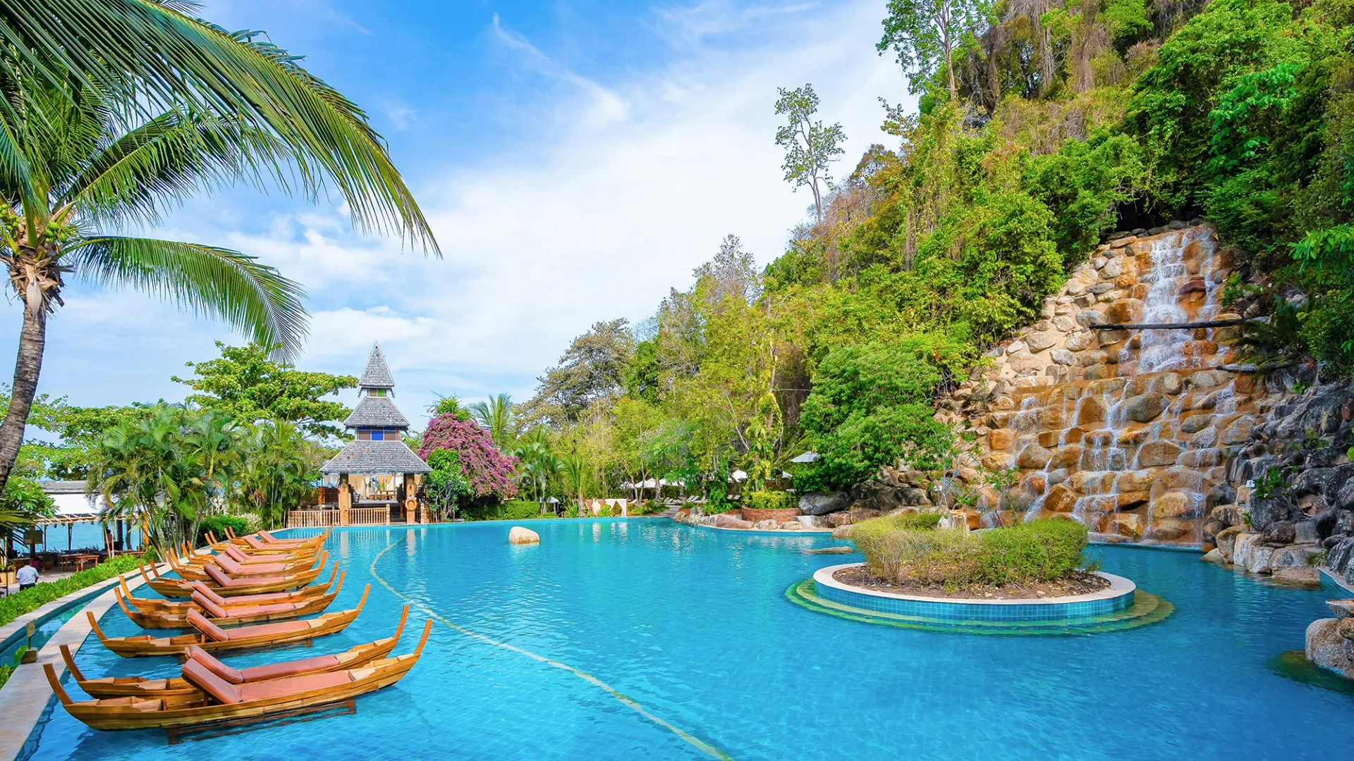 Her er 2 pool områder, lækker spa-afdeling, fitness, undervisning i thai-boksning, yoga og kokkeskole, og fra den private sandstrand kan der gratis lånes havkajakker og paddle-boards.