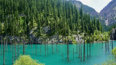 Vi fortsætter vores færd gennem noget af Centralasiens smukkeste natur, når vi besøger den lille Kayindysø, som blev dannet ved et jordskælv i 1910.