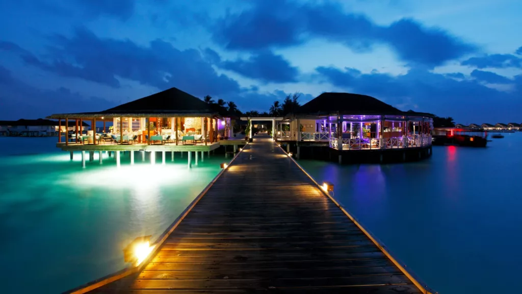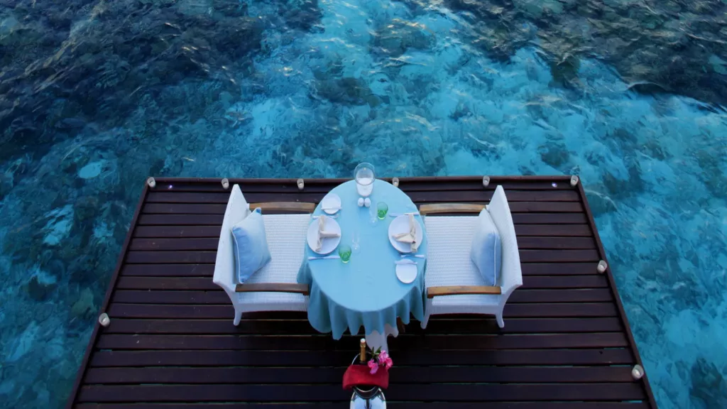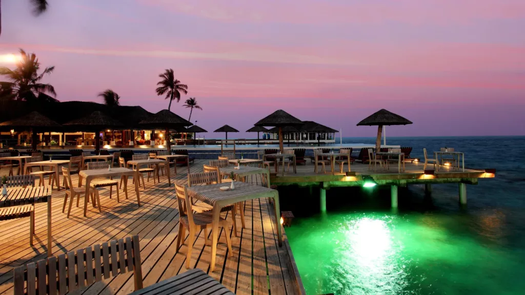 Snorkling er noget helt specielt her, og I skal kun få meter ud fra stranden for at se skildpadder, farvestrålende fisk og smukke koraller. Den bedste snorkling får I foran family water villaerne. Måltiderne nydes i en af resortets 3 lækre restauranter, og om aftenen kan I se film på stranden i måneskinnet, snuppe en sen massage eller nyde den hyggelige stemning i en af barerne i strandkanten.