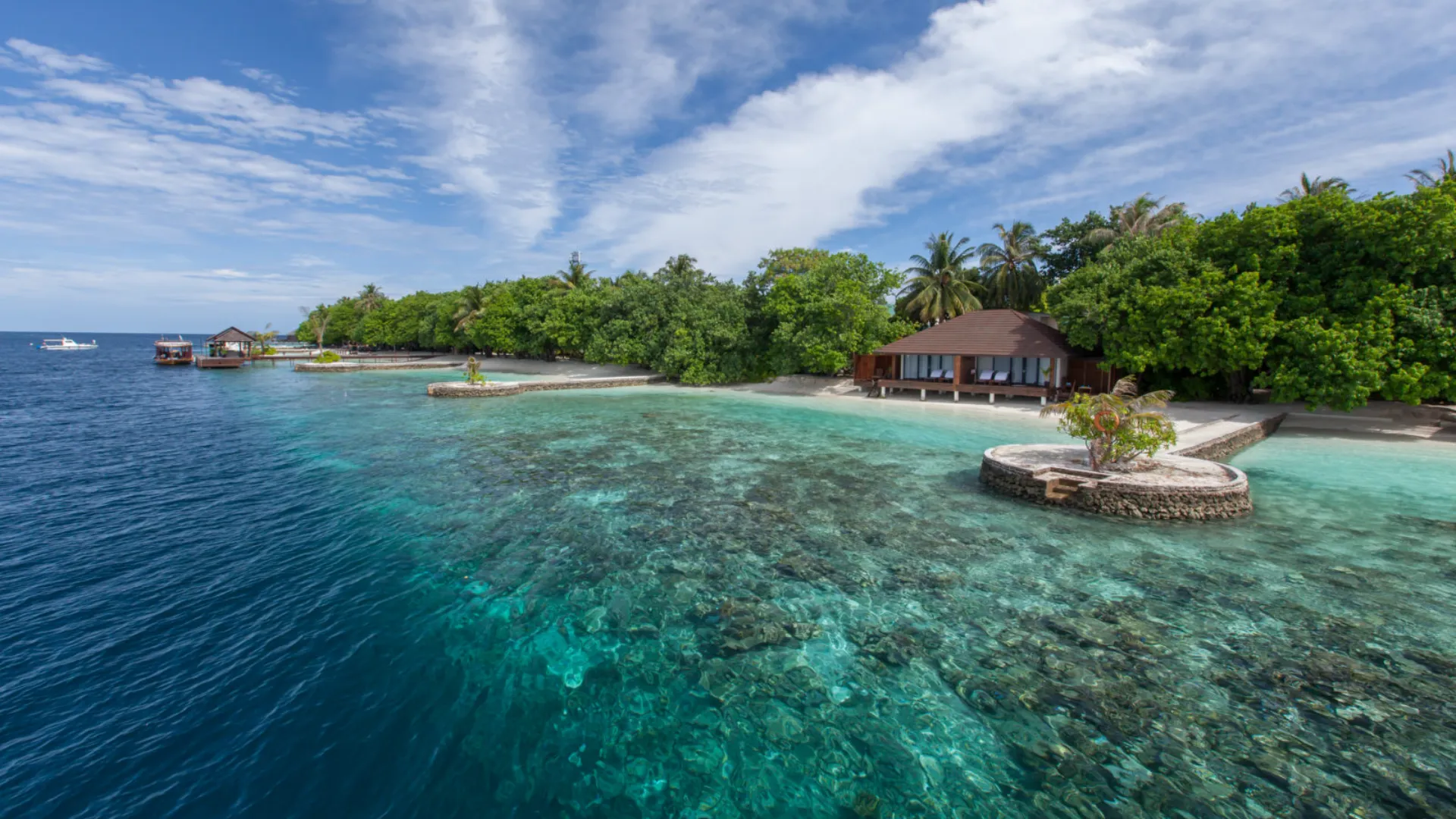 Lily Beach Resort møder jer med kridhvide strande omkranset af smukke palmer, med villaer spredt i vandkanten.