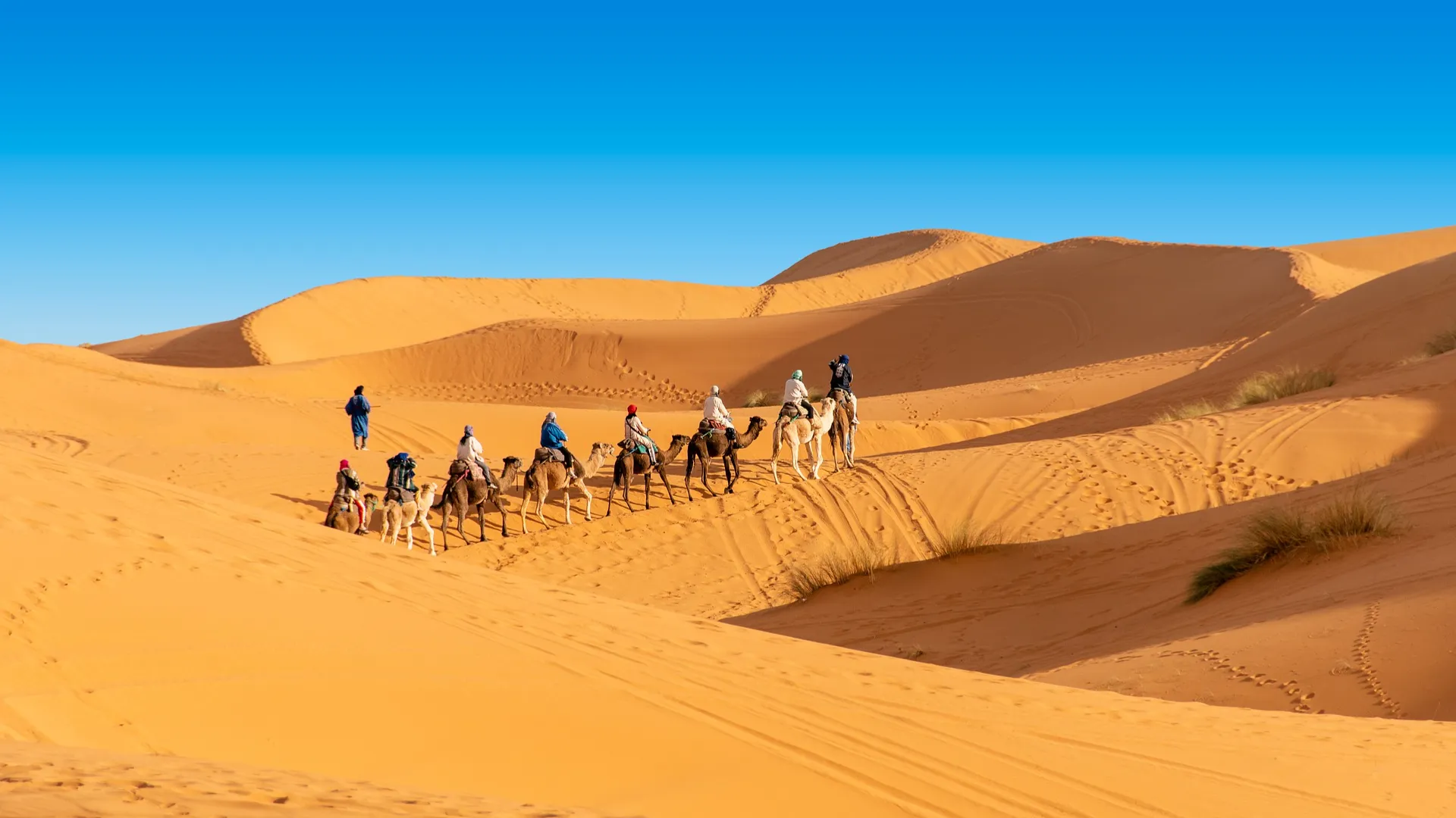 Du vil opleve smukke ørkenlandskaber med enorme sanddyner, hygge ved lejrbålet med nomaderne og en nattehimmel fyldt med stjerner– en meget fascinerende oplevelse. Overnatningerne foregår i beduintelt, og selvfølgelig skal du også ride på dromedar i solnedgangen og ud i det uendelige mellem sandklitterne.