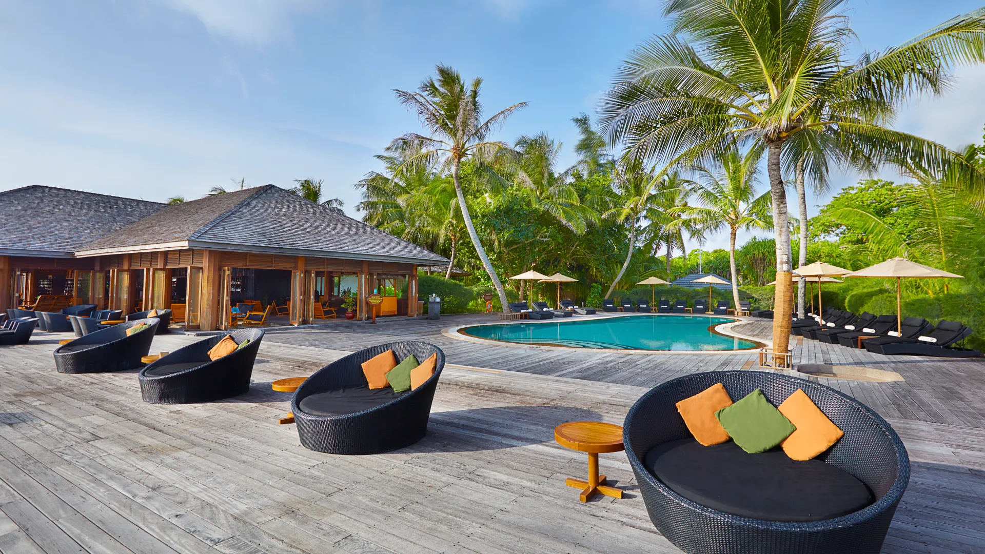 O' og Sangu villaerne har deres egne restauranter og pool områder tilknyttet.