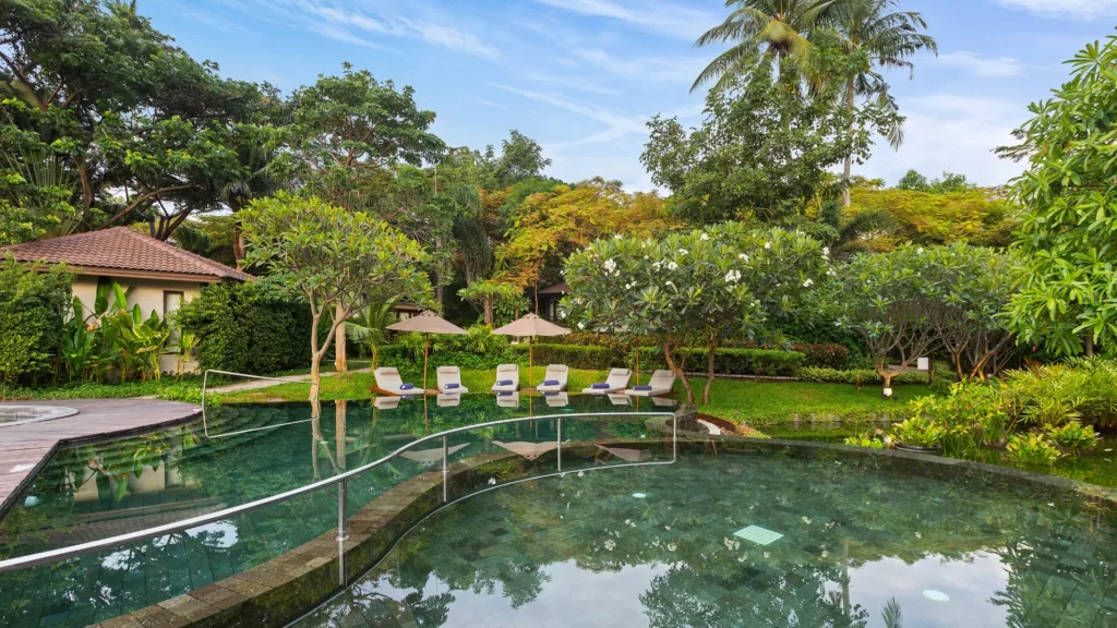 Her får I et resort med et meget højt serviceniveau, utroligt lækre suiter og villaer, der alle har privat plunge pool, og smukke omgivelser i den store tropiske have.